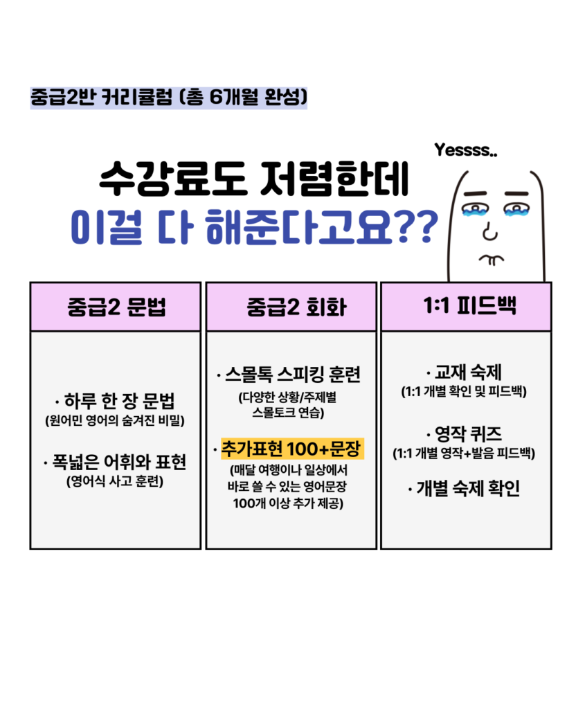 -중급반 기준 월 7회 수업 / 한 강의당 약 70분 수업
